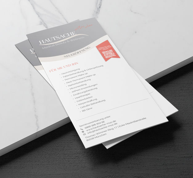 Da sich Kosmetik laufend wandelt, ist mit einem doppelseitigen Flyer gewährleistet, nur den jeweils geänderten Part neu zu gestalten, während alle anderen Flyer bestehen bleiben.